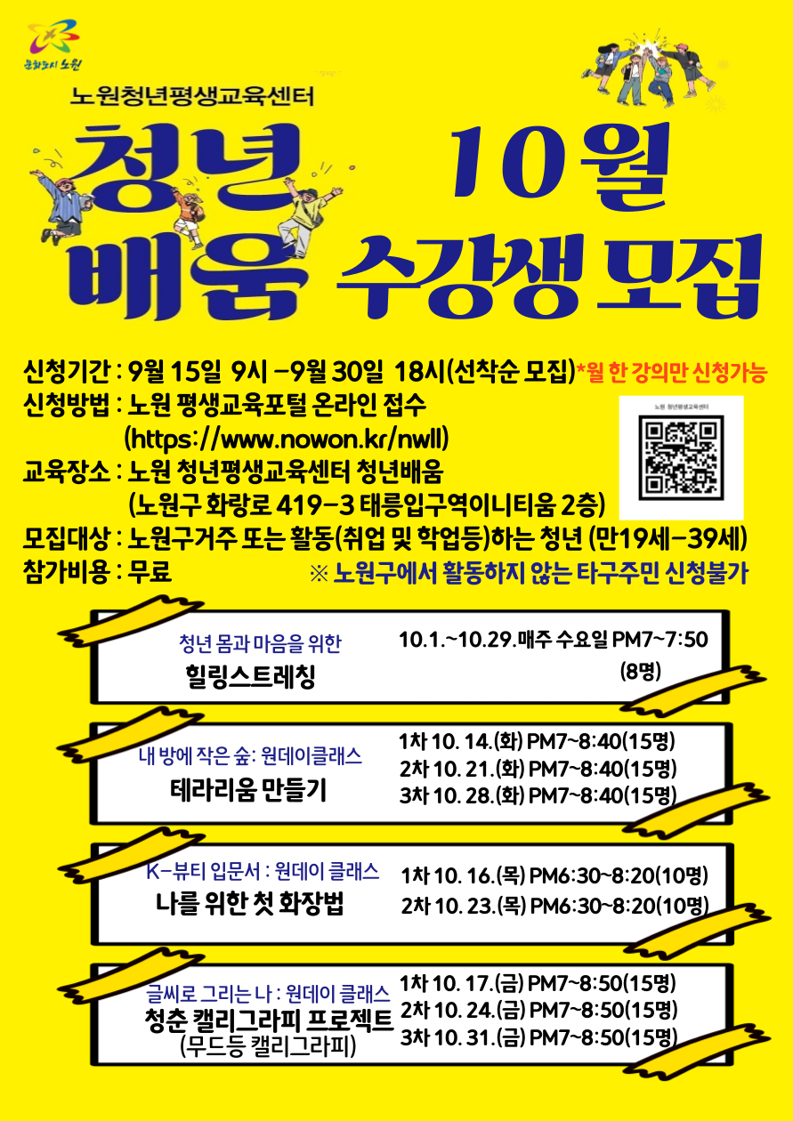 📌 신청방법 : 노원 평생교육포털 온라인 접수 (https://www.nowon.kr/nwll)