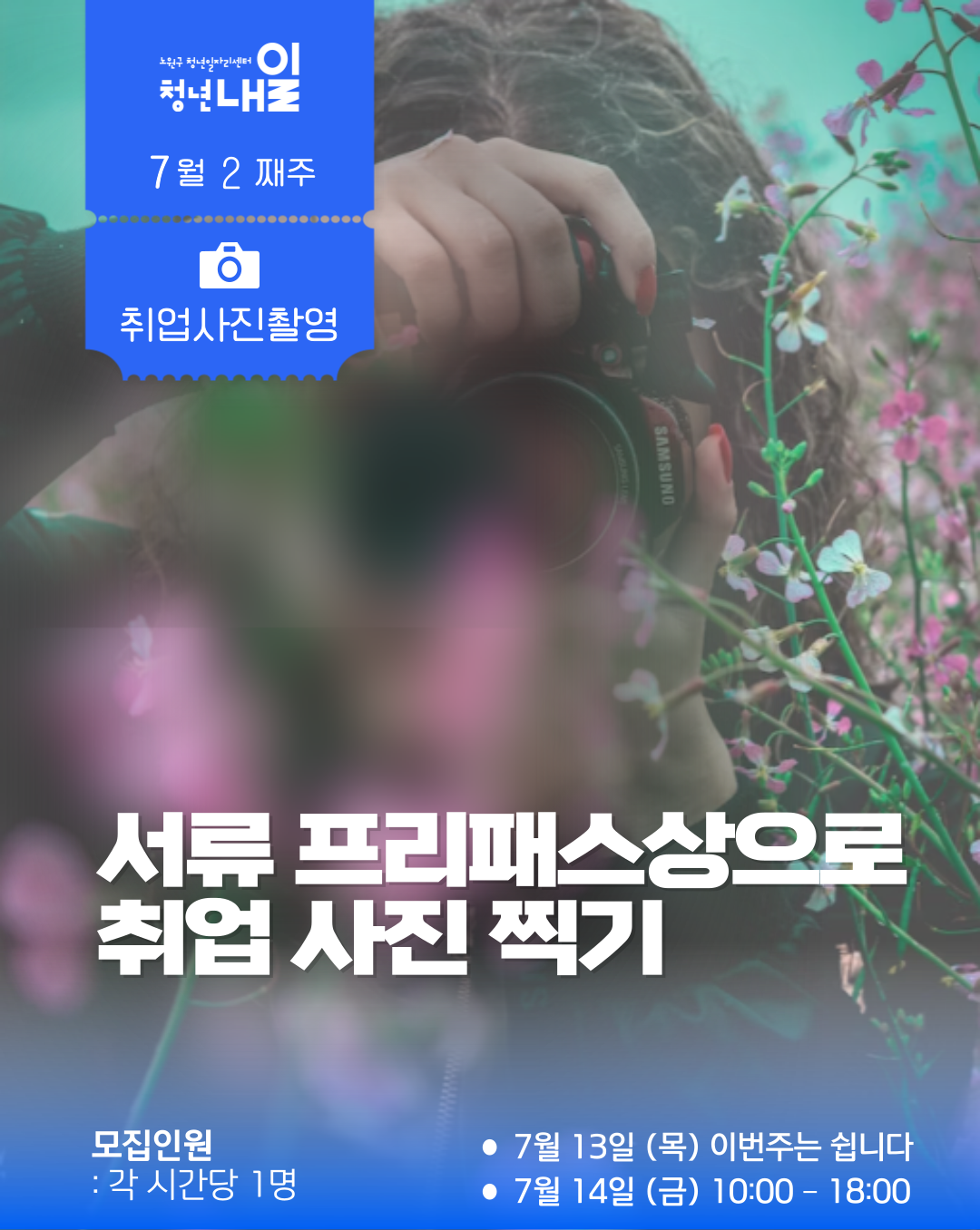 😎전문 사진 작가님이 청년 여러분의 모습을 직접 촬영해드리고, 마법같은 보정 서비스까지~!