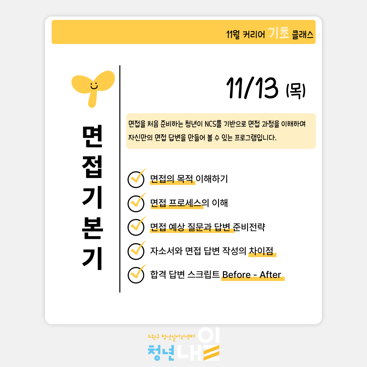 11월 커리어 기초 클래스 <NCS로 준비하는 자기소개서·면접 기본기>